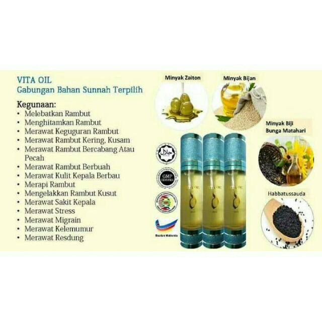 Minyak Jerslin Minyak Aromaterapi Picit Sedikit Vita Oil Pada Tangan Sapu Dan Ratakan Pada Rambut Dan Kulit Kepala Keistimewaan Vita Oil Baunya Yang Sangat Wangi Tidak Melekit